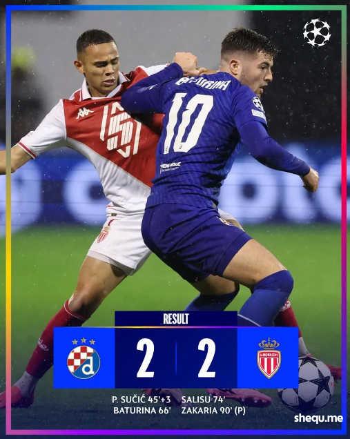 苏西奇、巴图里纳为主队先入两球,萨利苏扳回一城,扎卡里亚点球绝平。摩纳哥开季各项赛事不败,是目前欧洲五大联赛仅剩5支保持不败队之一(曼城、阿森纳、尤文、摩纳哥、恩波利)。
