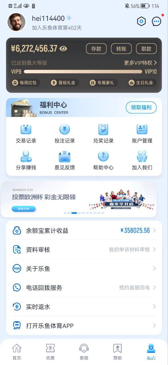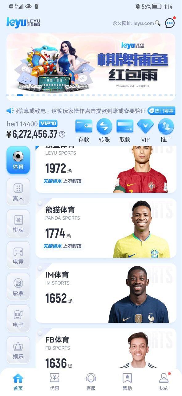 本人在乐鱼体育玩了400多天等级vip10,6月29号提款需要审核我的信息 我也提交了,7月1号账号就直接进不去,26号当天我就已经充值了200多万 我买的都是欧洲杯跟美洲杯 还有在乐鱼玩的大佬要小心 只应许你充值 不应许你提款。杀猪请认准亚博集团乐鱼体育!!做杀猪就上乐鱼体育。